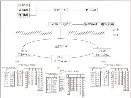 ③排水監(jiān)控分站:井下千兆網(wǎng)線環(huán)網(wǎng)建立數(shù)據(jù)傳輸?shù)闹修D(zhuǎn)站排水點(diǎn)的之間控制.分站之間采用光纖通信。